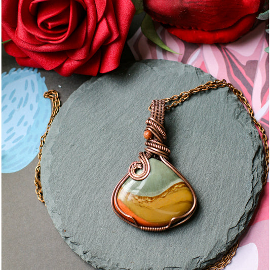 Large Polychrome Jasper & Red Goldstone Necklace (Aged Copper)