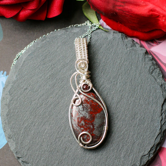 Iron Jaspilite & Garnet Necklace (Sterling Silver)