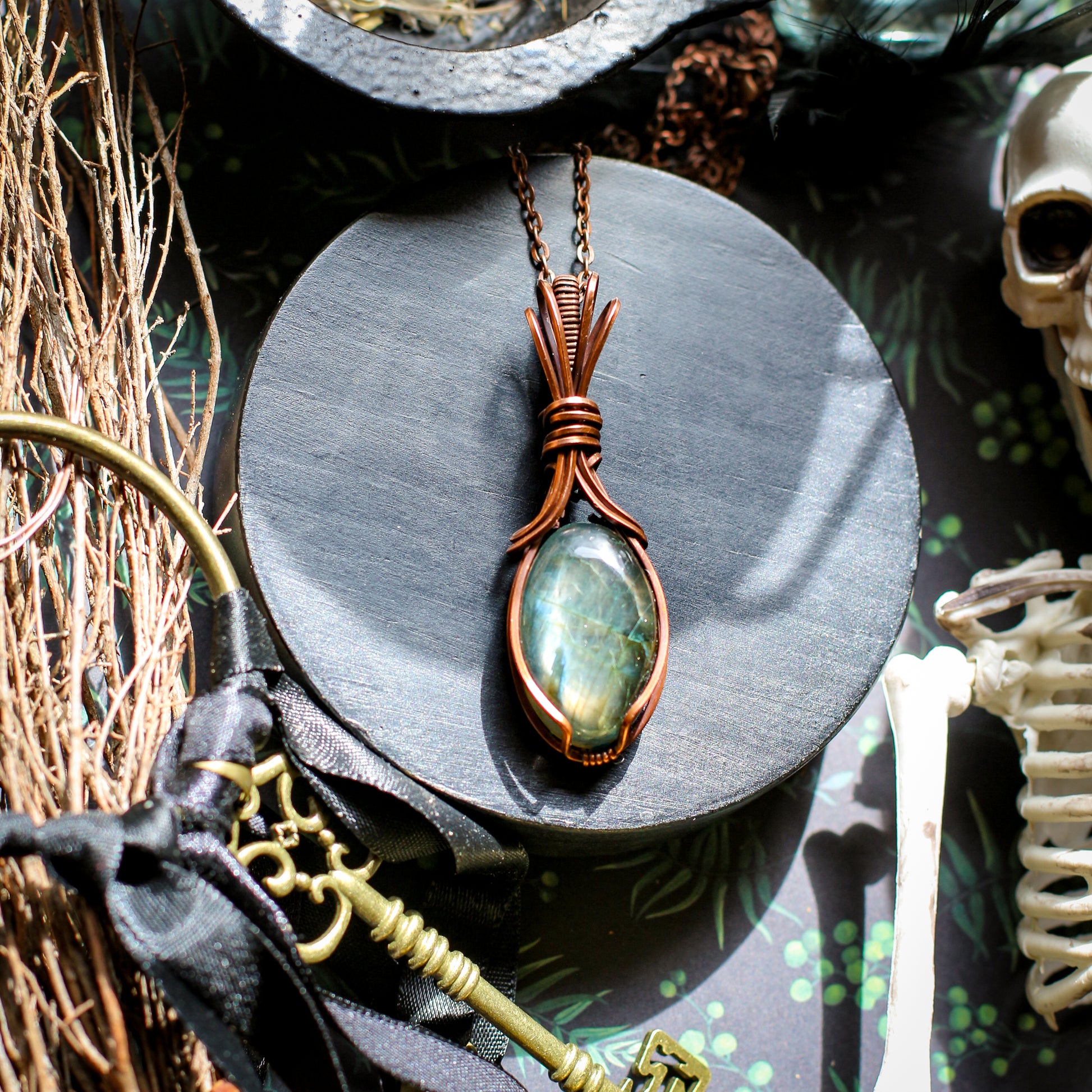 FLASHY Labradorite & Aged Copper Necklace