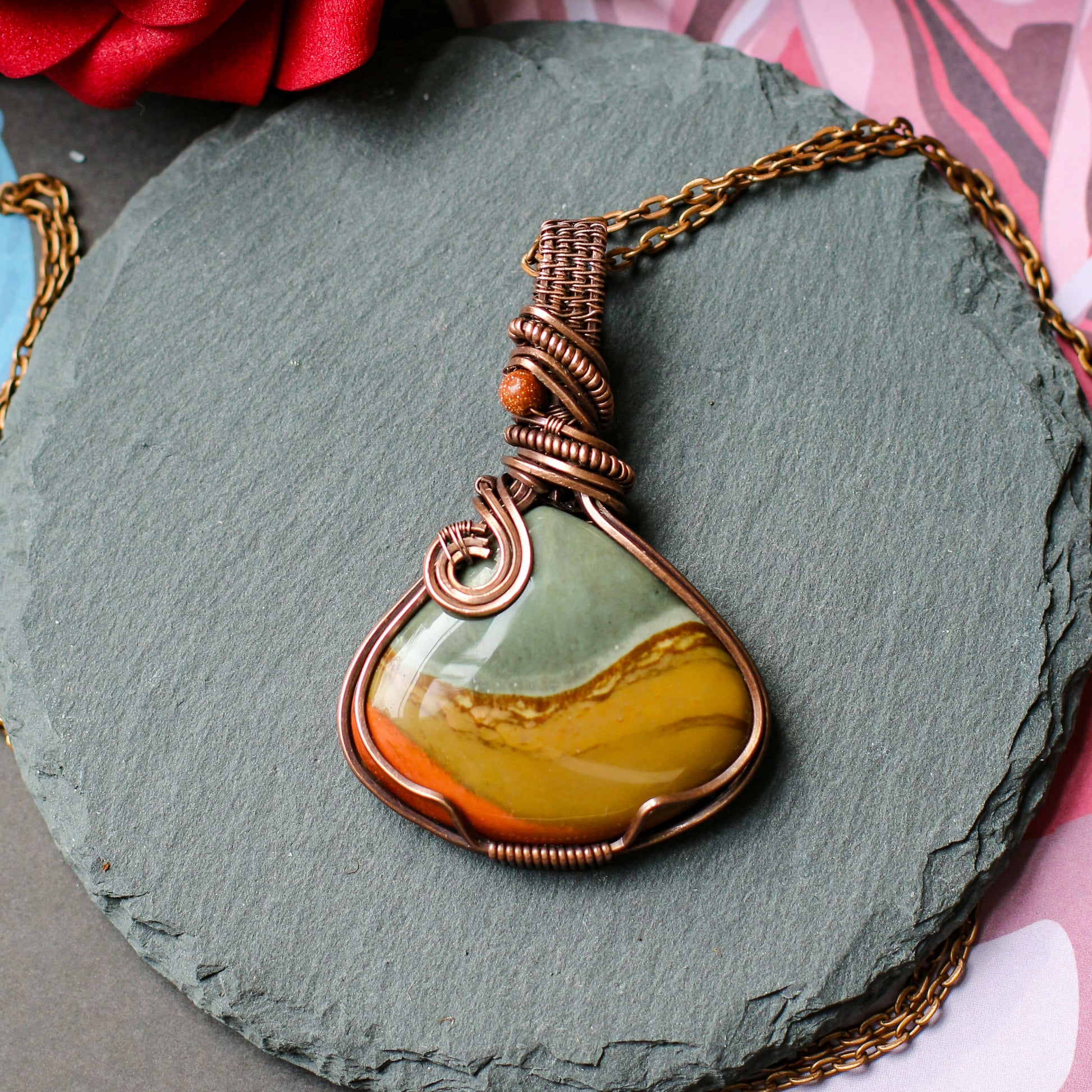 Large Polychrome Jasper & Red Goldstone Necklace (Aged Copper)