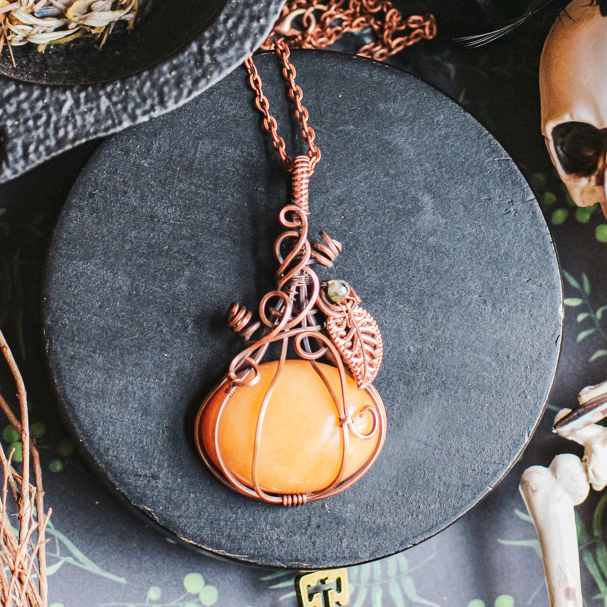 SPECIAL Large Yellow Aventurine & Moss Agate Pumpkin Necklace (Aged Copper)