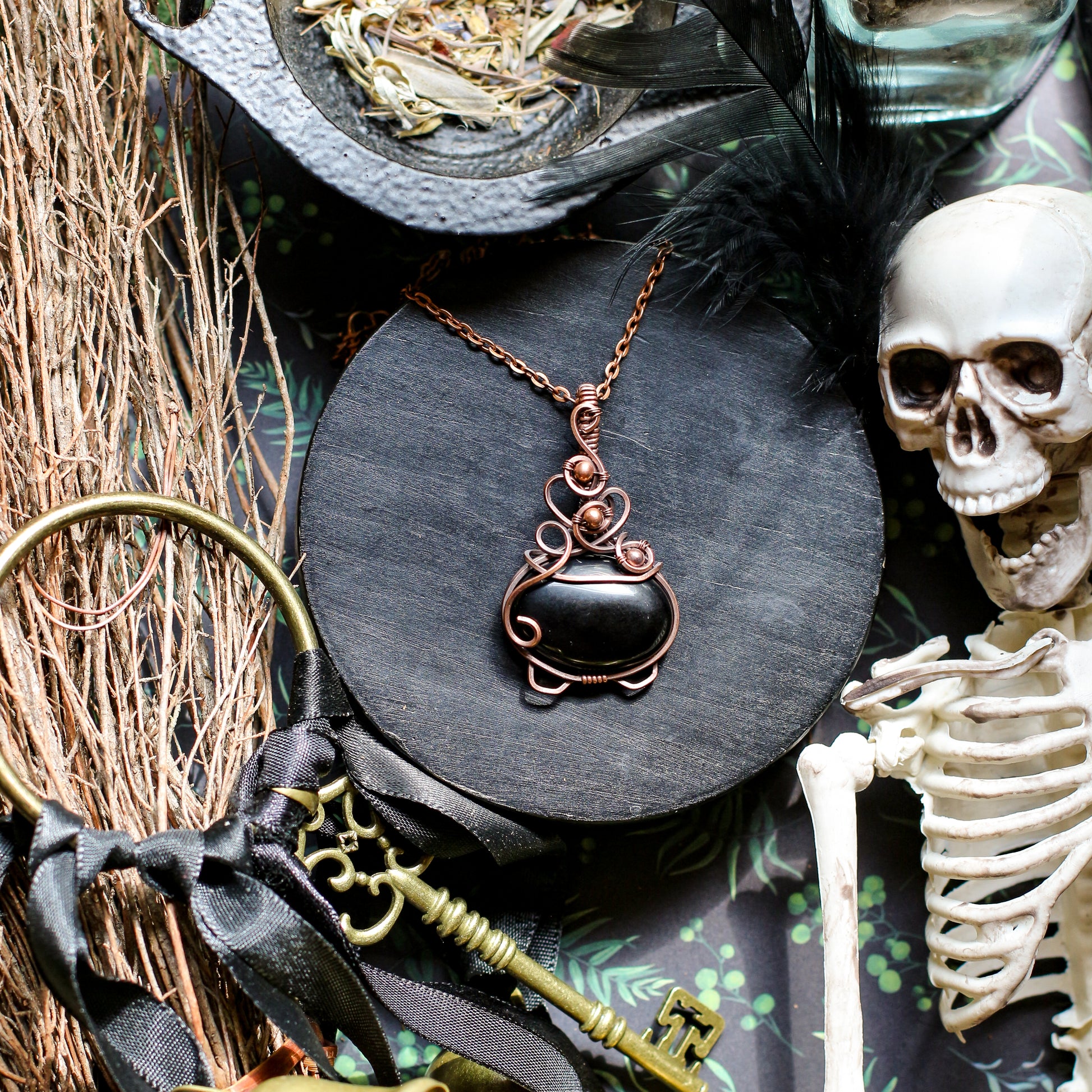 SPECIAL Obsidian "Bubble Cauldron" Necklace (Aged Copper)